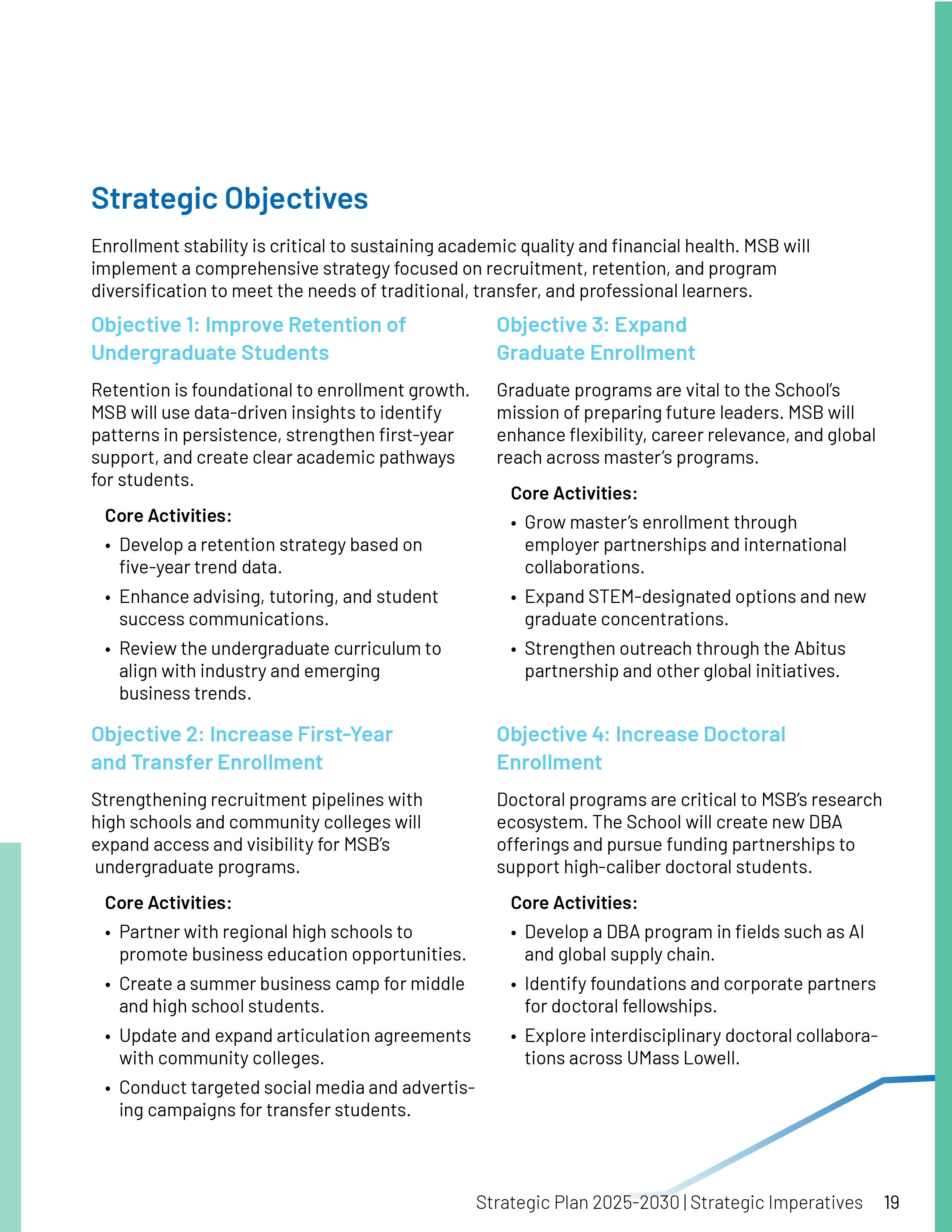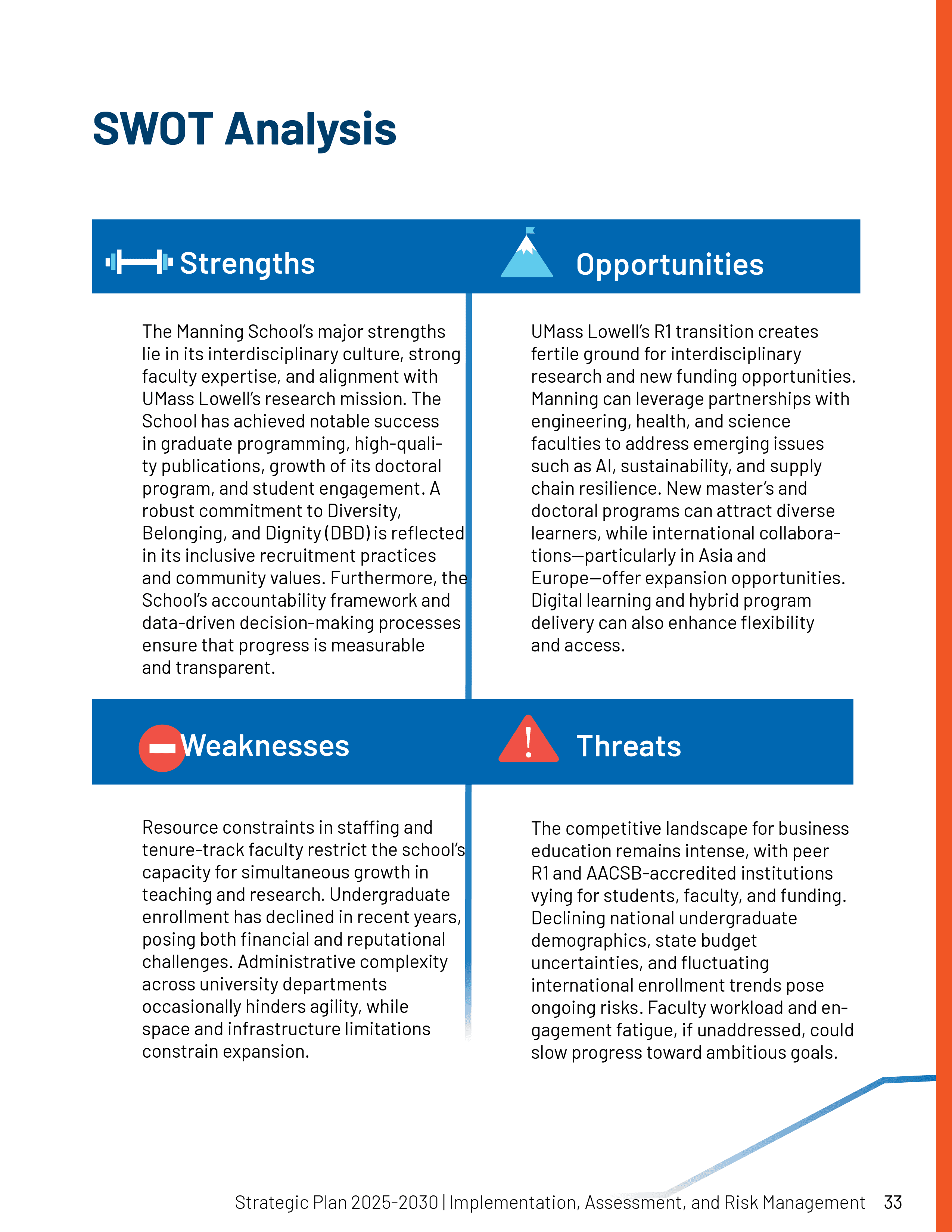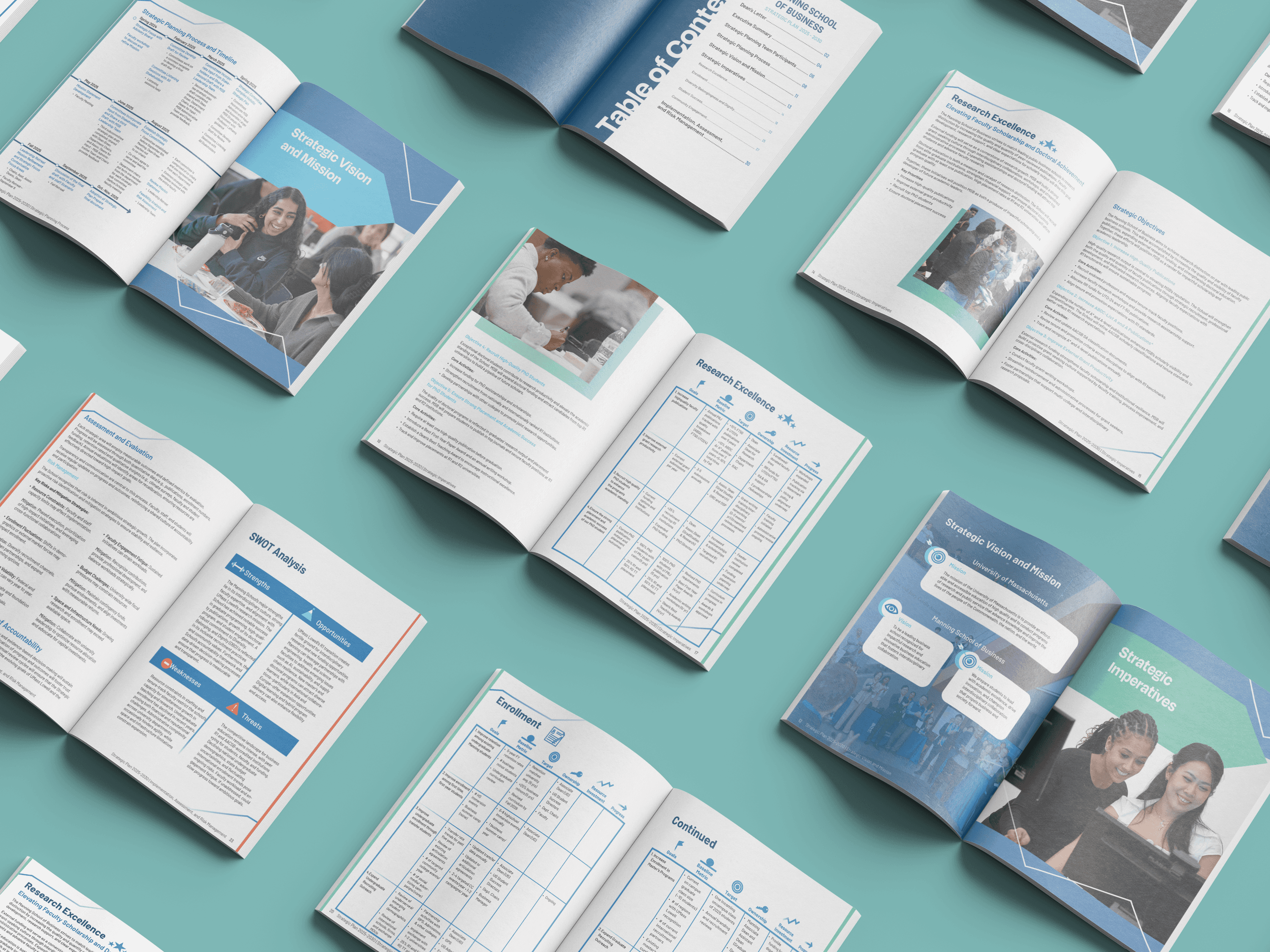 For one semester, my professor offered me an internship with the Manning Business School on the North campus at UMass Lowell. I did a variety of work, including social media, creating templates on Canva, and creating their Business Strategy booklet, which challenged me the most. I even came back as a contract worker to make some finishing touches, since they didn't have all the information for the tables when I was working for them.